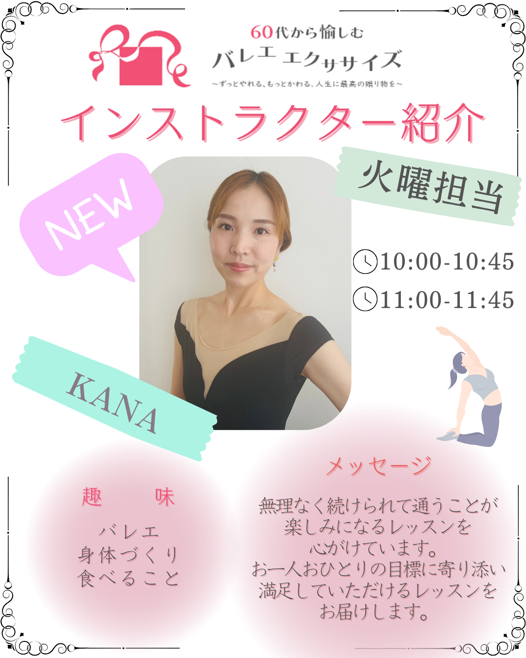 バレエ エクササイズに、新しいインストラクターが仲間入りしましたのでご紹介させていただきます✨